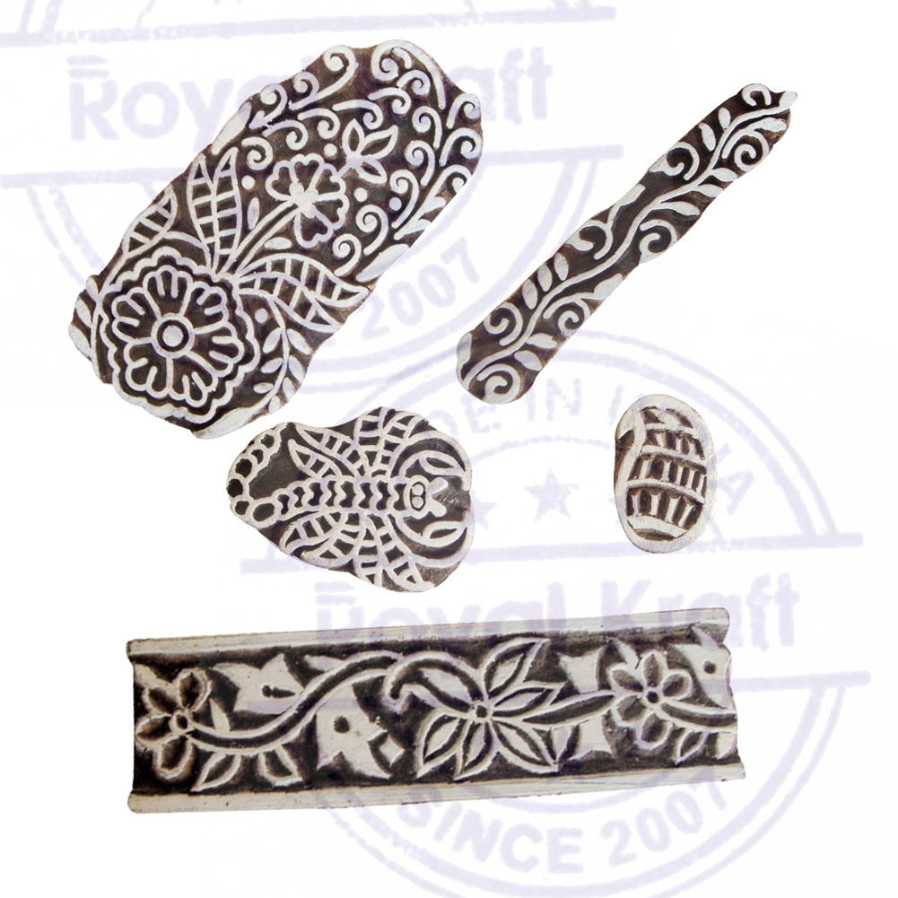 Textile Wood Blocks Ethnic Floral Shape Printing Stamps (Set of 5)