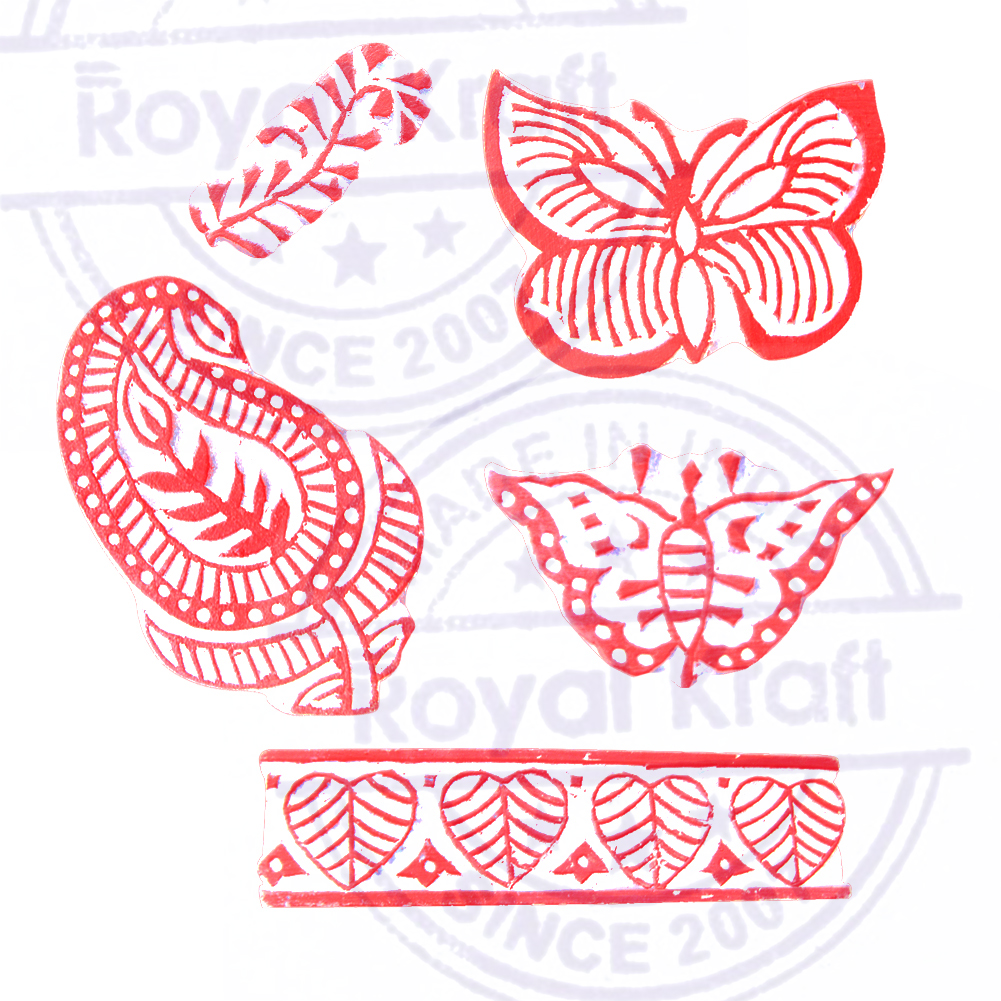 Buy Wooden Stamps for Block Printing on fabric, textile, clay, pottery, henna tattoo, paper from Royal Kraft. Wooden printing stamps are wonderful tools for adding intricate designs to various surfaces. When selecting wooden printing stamps, consider the intricacy of your design needs, the quality of the wood, and the size of the stamp. Hand-carved stamps might offer an authentic, artisanal touch, consistency in the print.