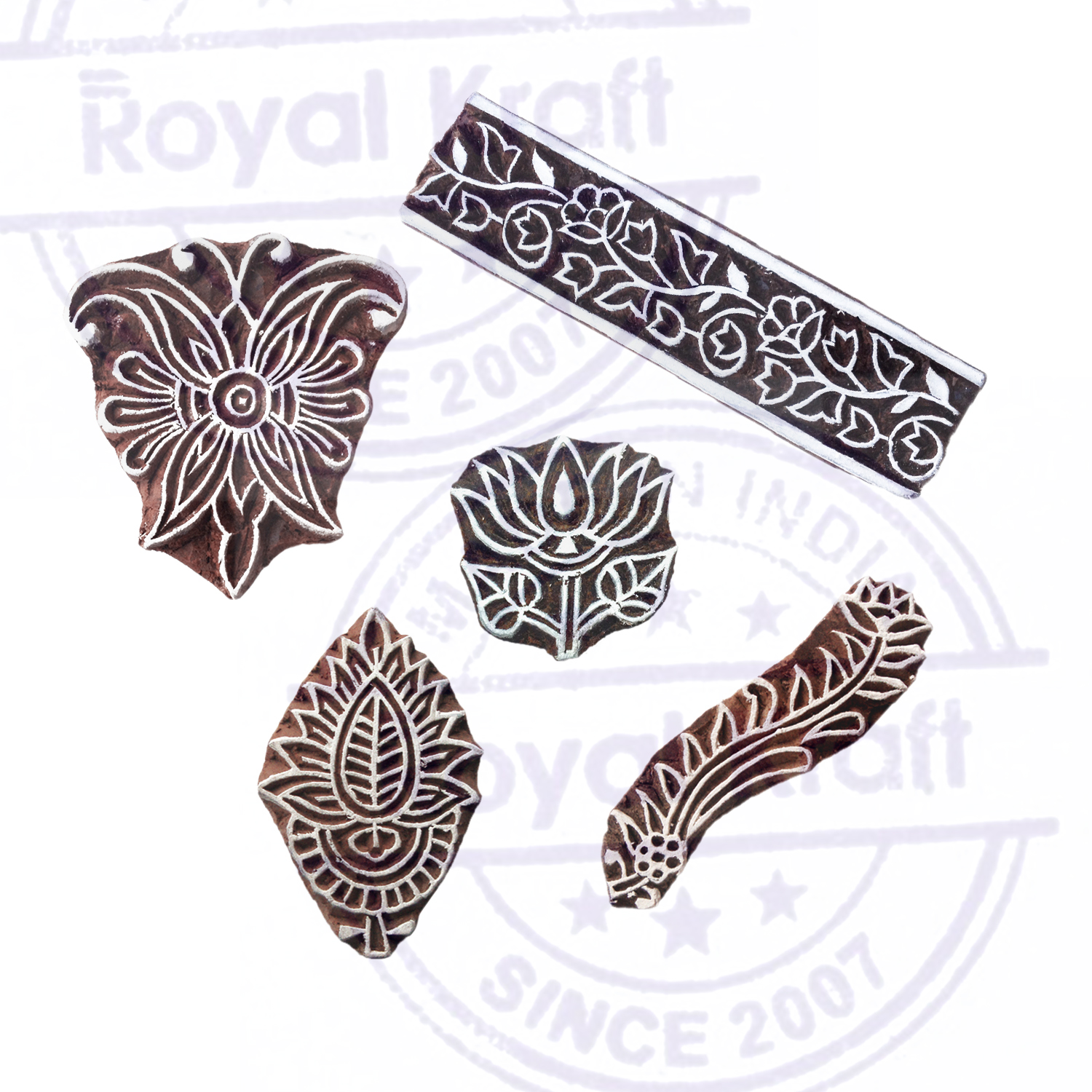 Buy Wooden Stamps for Block Printing on fabric, textile, clay, pottery, henna tattoo, paper from Royal Kraft. Wooden printing stamps are wonderful tools for adding intricate designs to various surfaces. When selecting wooden printing stamps, consider the intricacy of your design needs, the quality of the wood, and the size of the stamp. Hand-carved stamps might offer an authentic, artisanal touch, consistency in the print.