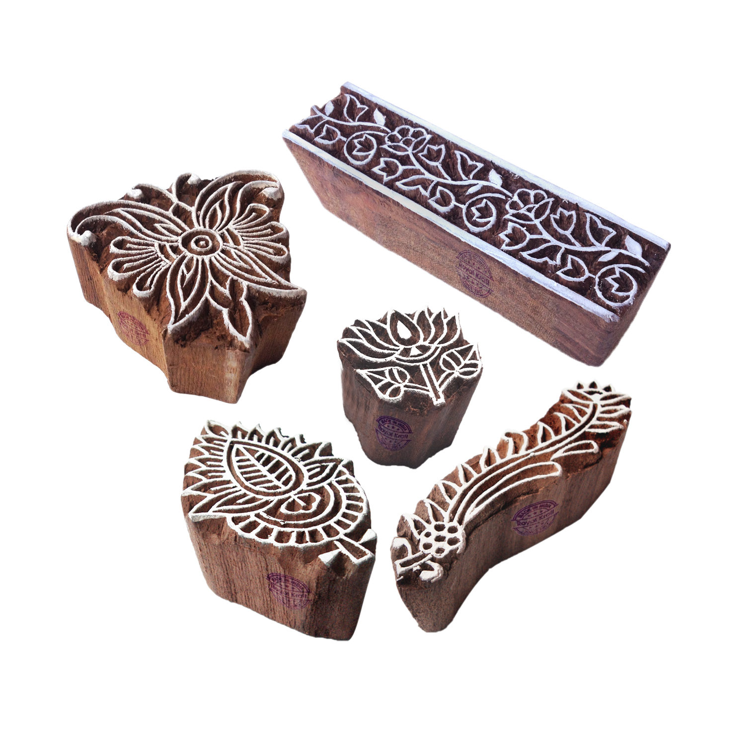 Crafty Motif Mix and Floral Block Print Wood Stamps (Set of 5)