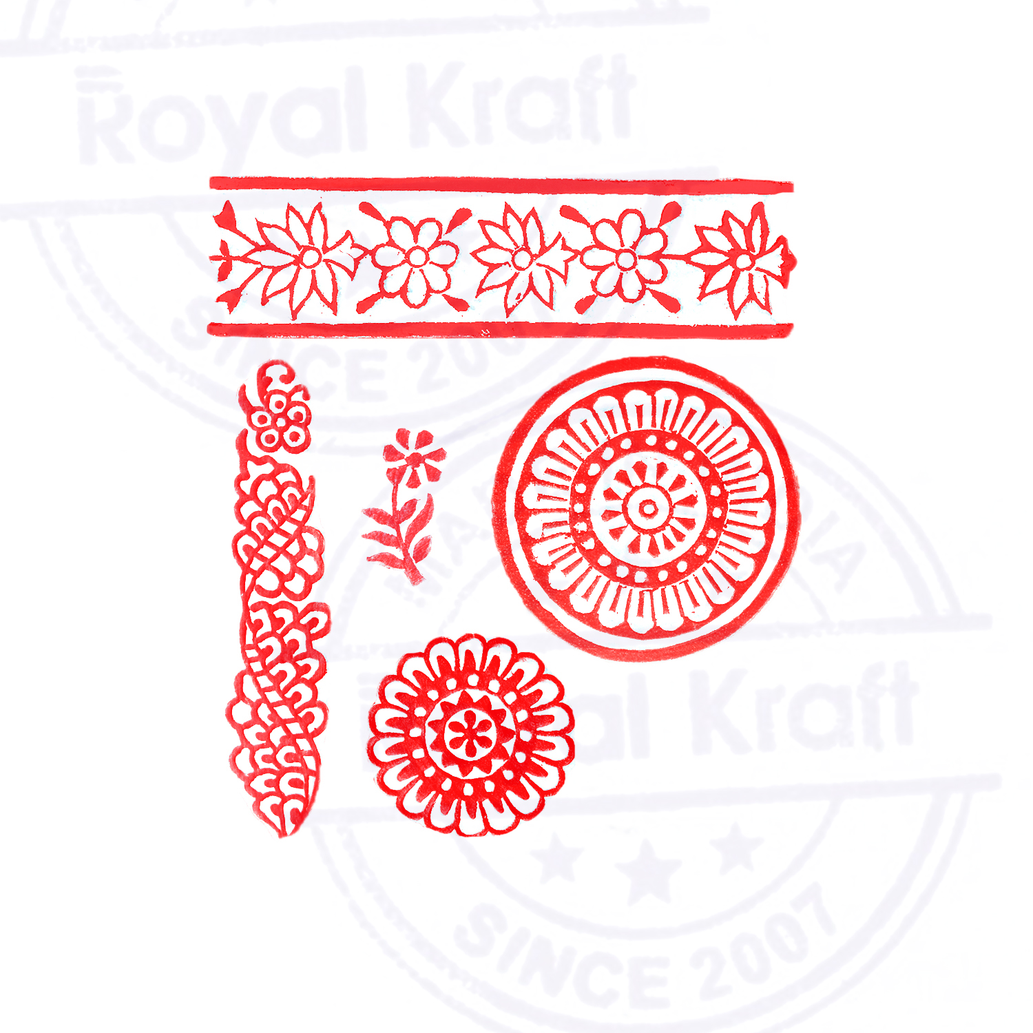 Buy Wooden Stamps for Block Printing on fabric, textile, clay, pottery, henna tattoo, paper from Royal Kraft. Wooden printing stamps are wonderful tools for adding intricate designs to various surfaces. When selecting wooden printing stamps, consider the intricacy of your design needs, the quality of the wood, and the size of the stamp. Hand-carved stamps might offer an authentic, artisanal touch, consistency in the print.