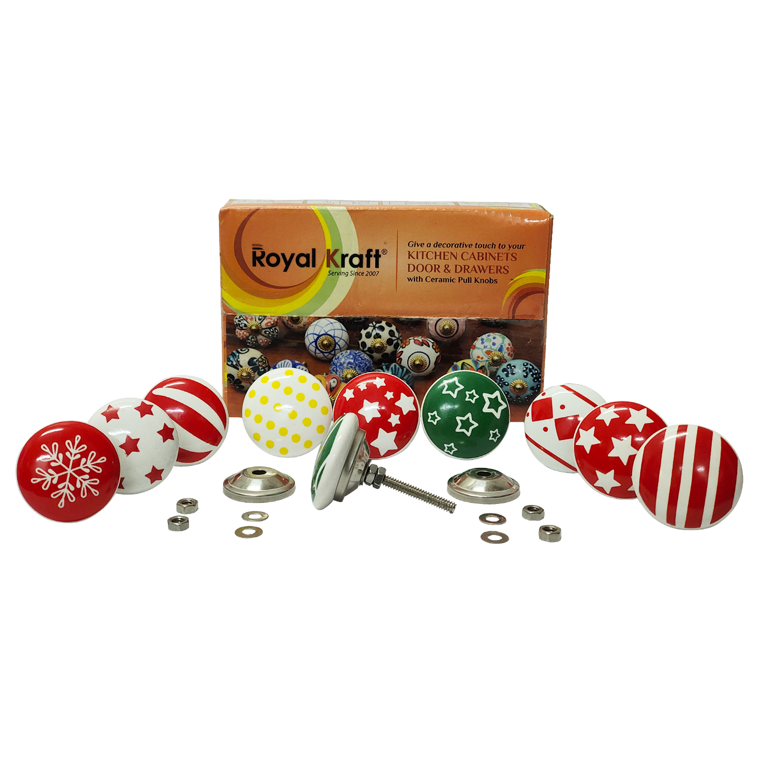 Royal Kraft Vintage Red and Green Painted Ceramic Pull Knobs for Kitchen Cabinet, Door & Drawer, Wardrobe, Cupboard (10 Designs x 2 pcs = 20 knobs) Sknob021_20