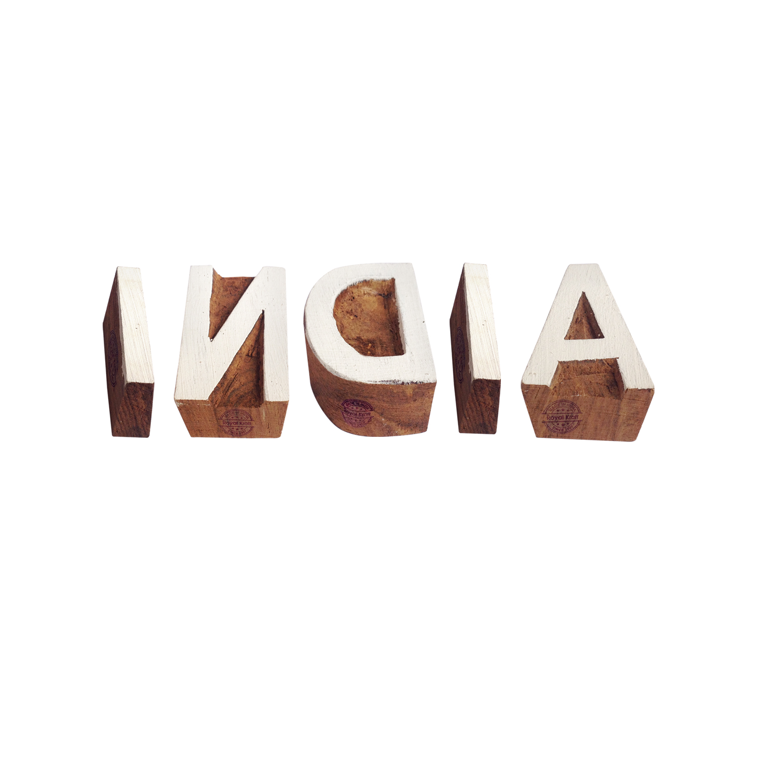Letters Wooden Blocks Jaipuri India Country Design Printing Stamps (Set of 5)