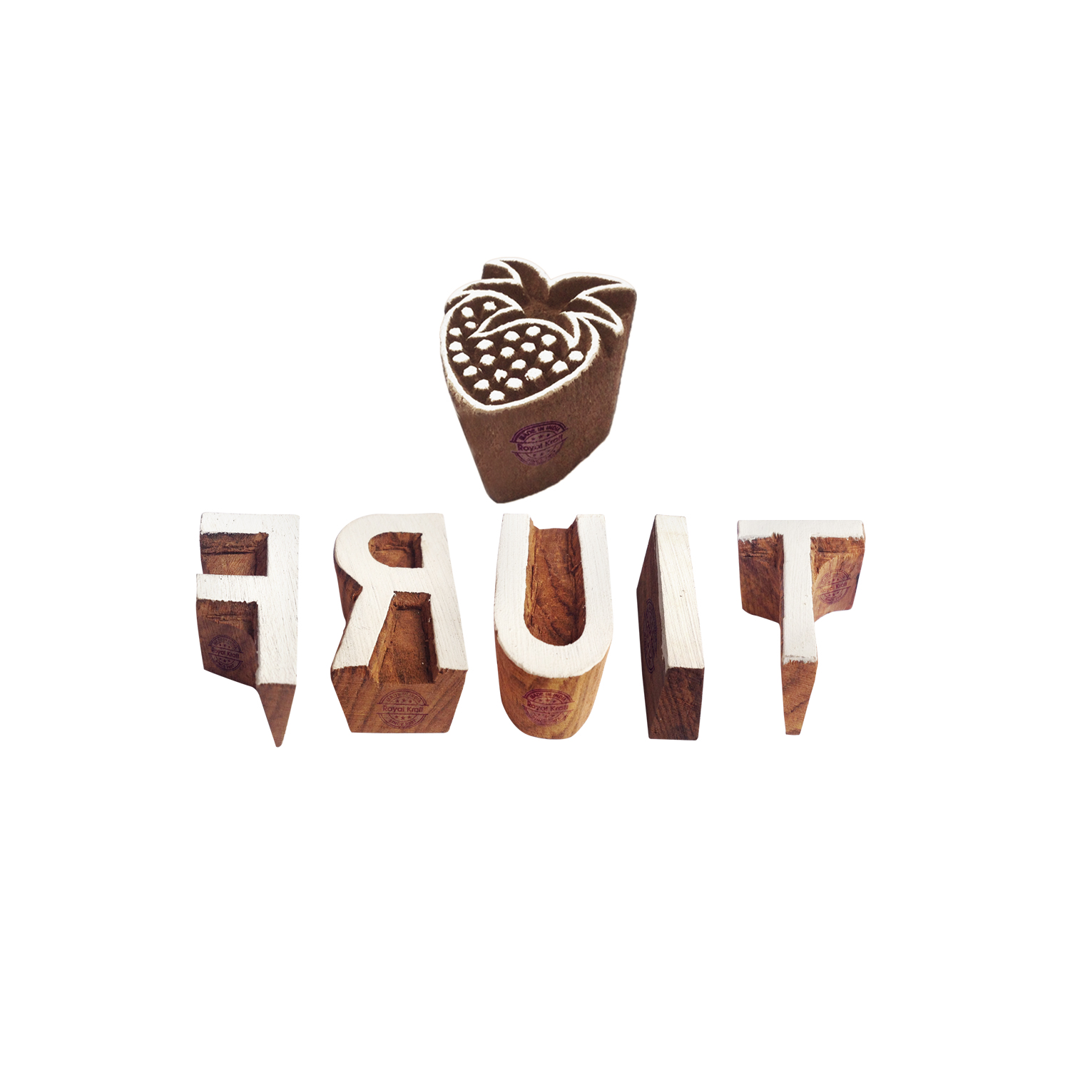 Learning Wooden Stamps Designer Fruit Letter Pattern Printing Blocks (Set of 6)