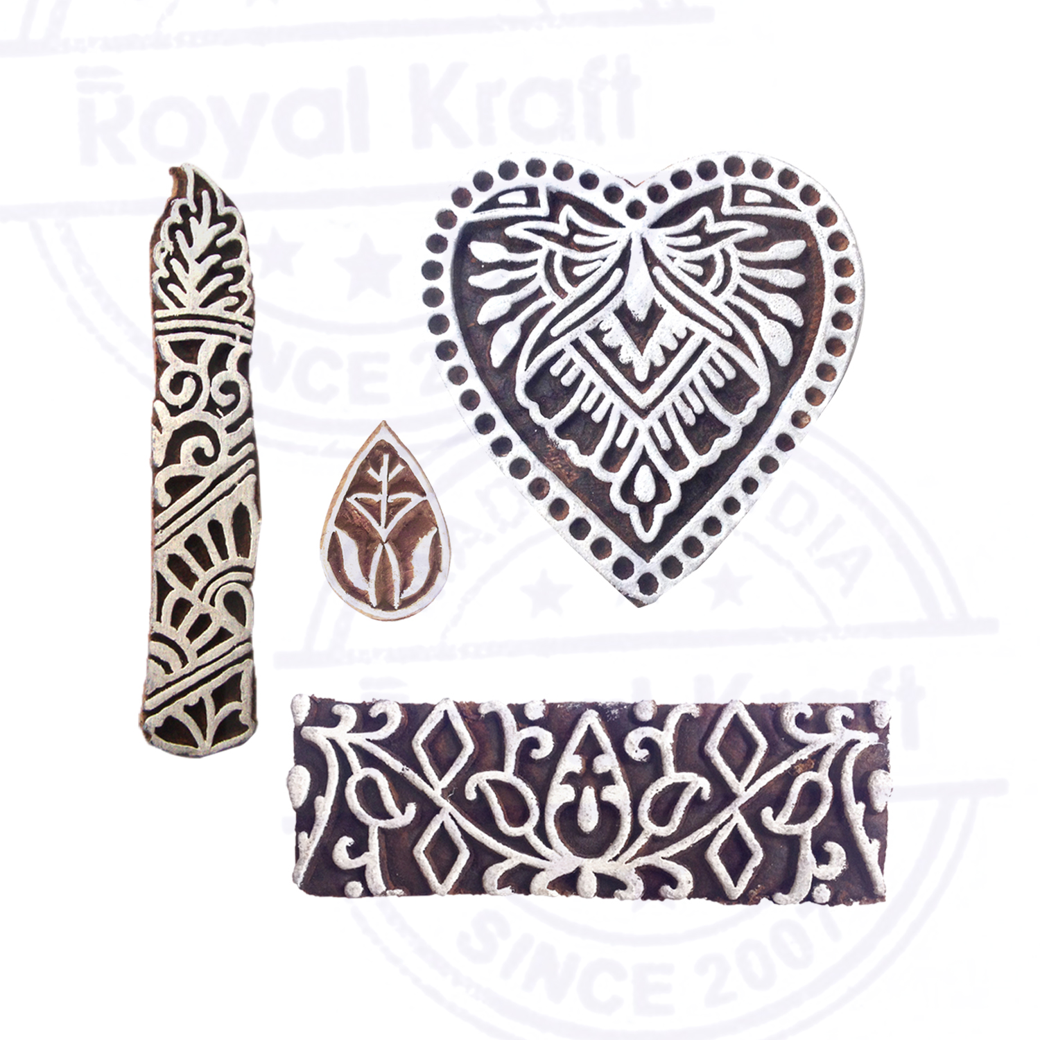 Henna Wooden Stamps Indian Heart Border Pattern Printing Blocks (Set of 4)