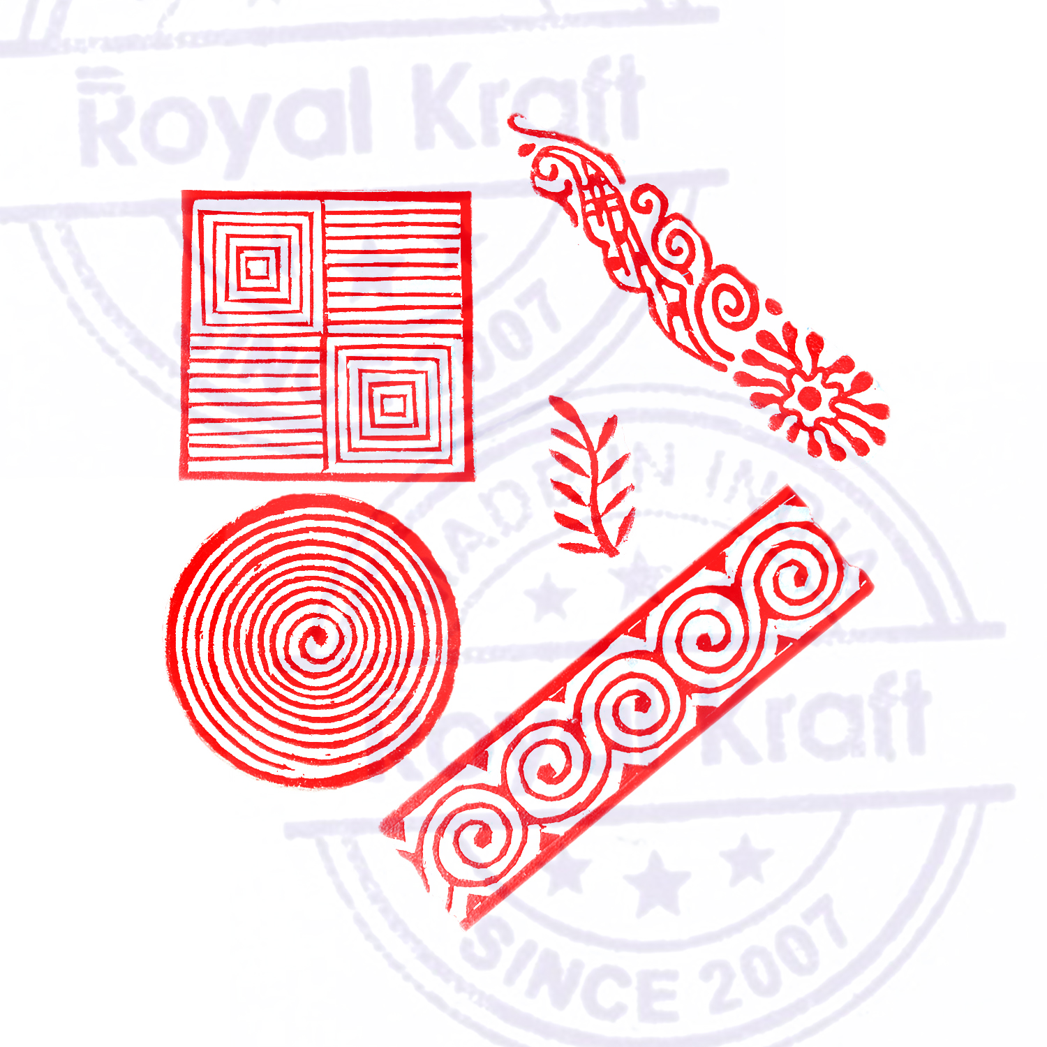 Buy Wooden Stamps for Block Printing on fabric, textile, clay, pottery, henna tattoo, paper from Royal Kraft. Wooden printing stamps are wonderful tools for adding intricate designs to various surfaces. When selecting wooden printing stamps, consider the intricacy of your design needs, the quality of the wood, and the size of the stamp. Hand-carved stamps might offer an authentic, artisanal touch, consistency in the print.