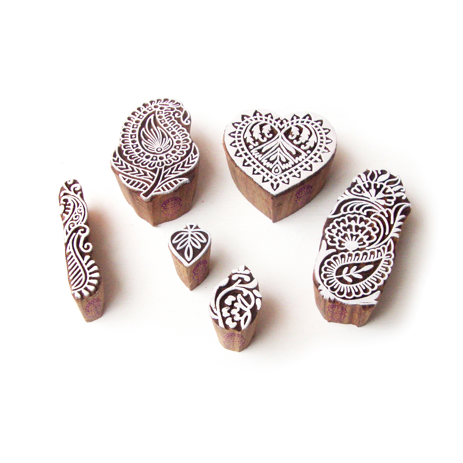 Be the first to review “Heart and Paisley Elegant Pattern Wooden Blocks for Printing (Set of 6)”