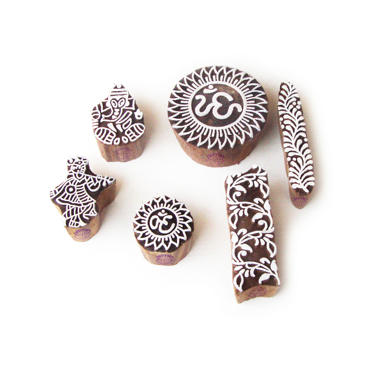 Buy Wooden Stamps for Block Printing on fabric, textile, clay, pottery, henna tattoo, paper from Royal Kraft. Wooden printing stamps are wonderful tools for adding intricate designs to various surfaces. When selecting wooden printing stamps, consider the intricacy of your design needs, the quality of the wood, and the size of the stamp. Hand-carved stamps might offer an authentic, artisanal touch, consistency in the print.
