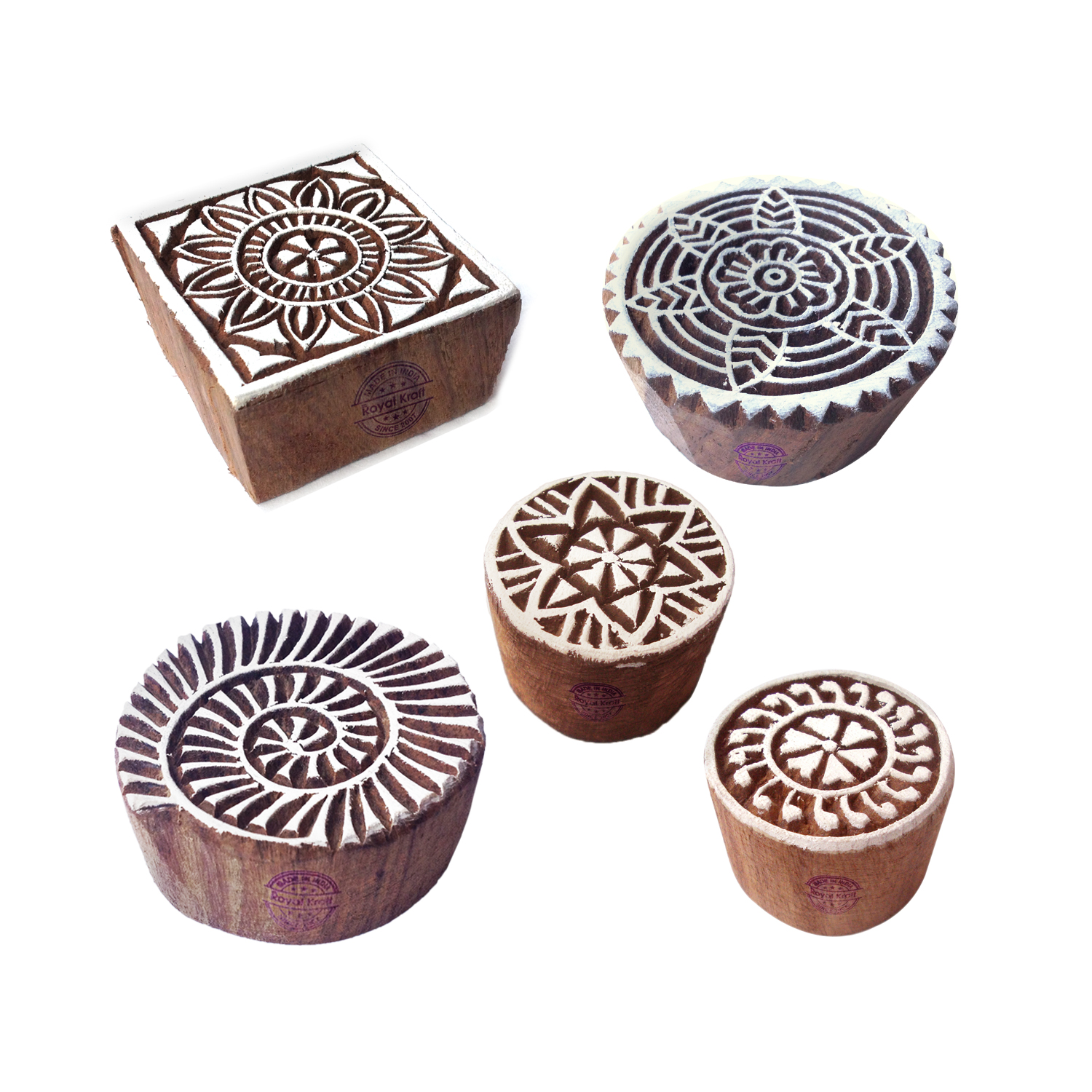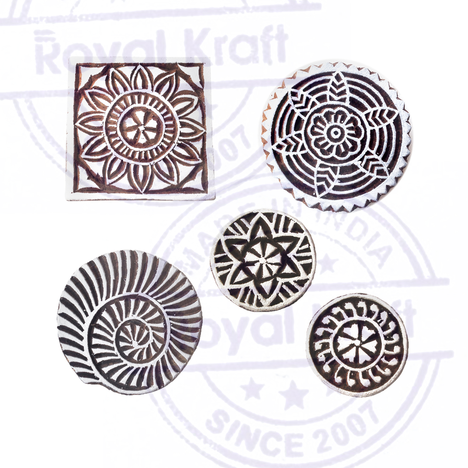 Buy Wooden Stamps for Block Printing on fabric, textile, clay, pottery, henna tattoo, paper from Royal Kraft. Wooden printing stamps are wonderful tools for adding intricate designs to various surfaces. When selecting wooden printing stamps, consider the intricacy of your design needs, the quality of the wood, and the size of the stamp. Hand-carved stamps might offer an authentic, artisanal touch, consistency in the print.