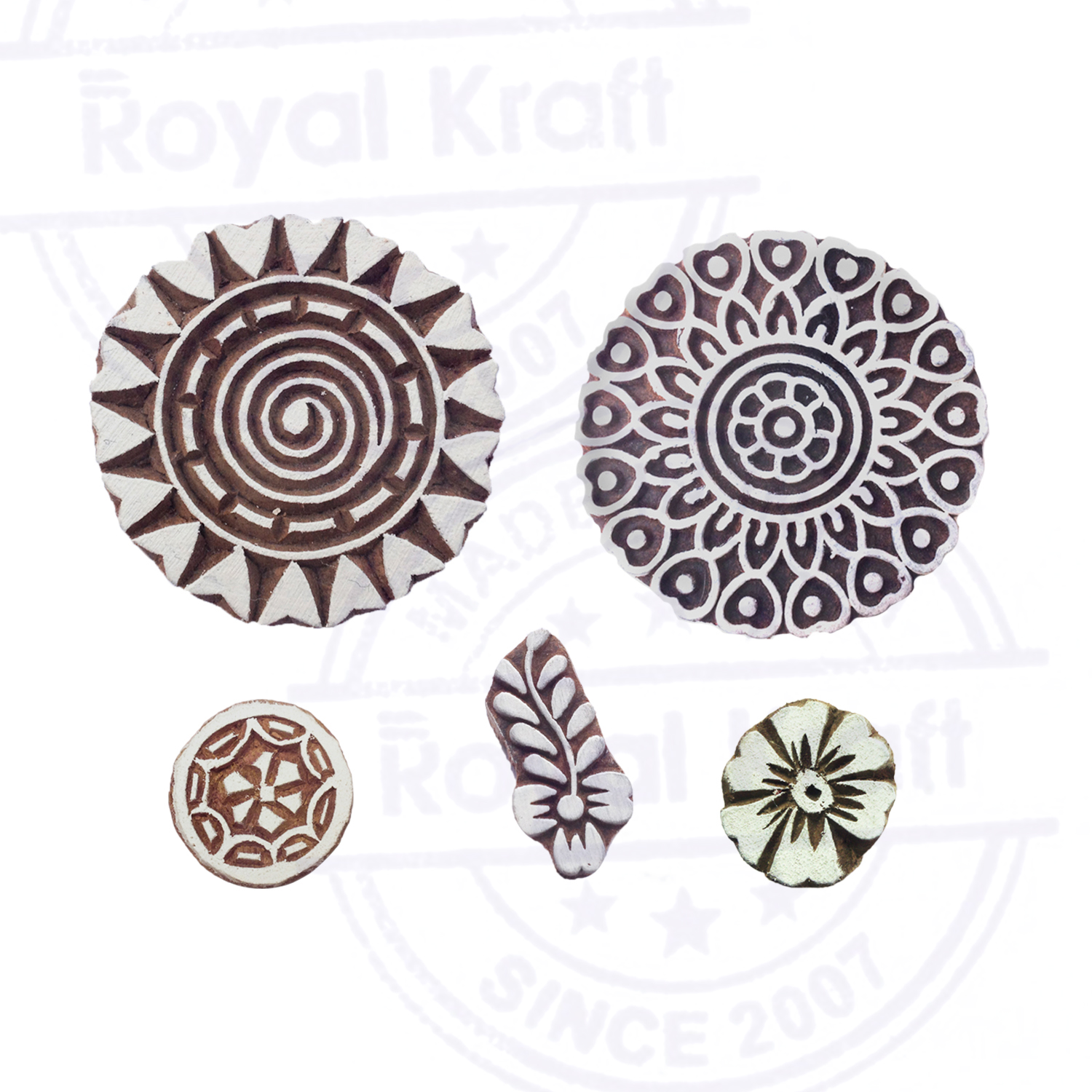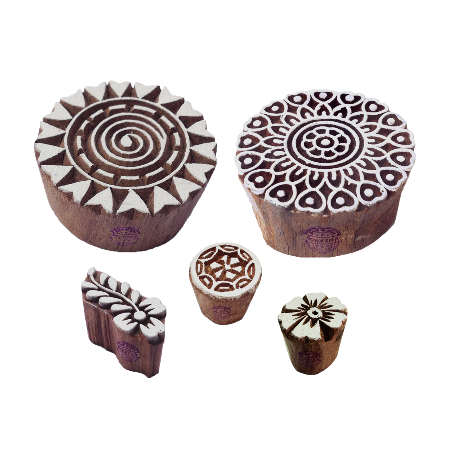 Indian Motif Mandala and Round Block Print Wood Stamps (Set of 5)