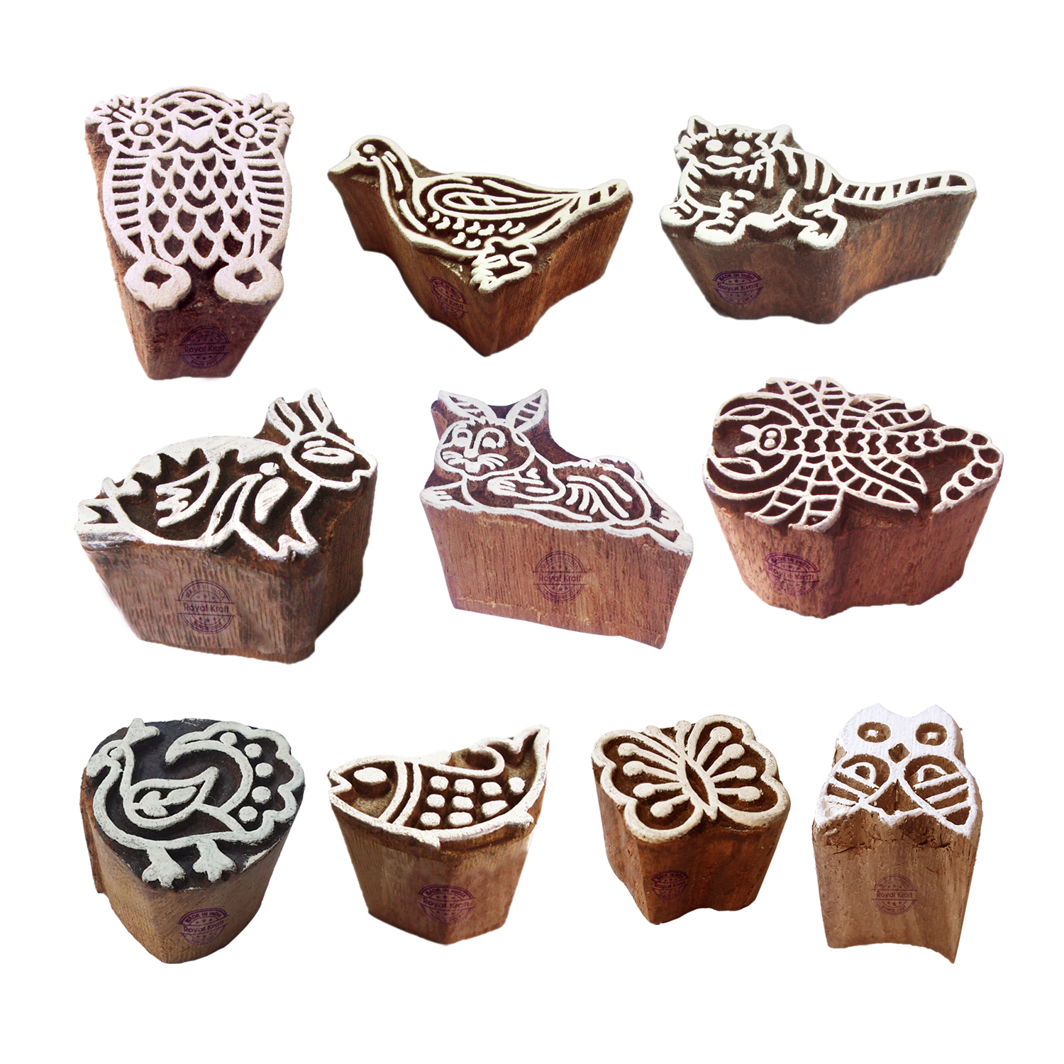 Buy Wooden Stamps for Block Printing on fabric, textile, clay, pottery, henna tattoo, paper from Royal Kraft. Wooden printing stamps are wonderful tools for adding intricate designs to various surfaces. When selecting wooden printing stamps, consider the intricacy of your design needs, the quality of the wood, and the size of the stamp. Hand-carved stamps might offer an authentic, artisanal touch, consistency in the print.